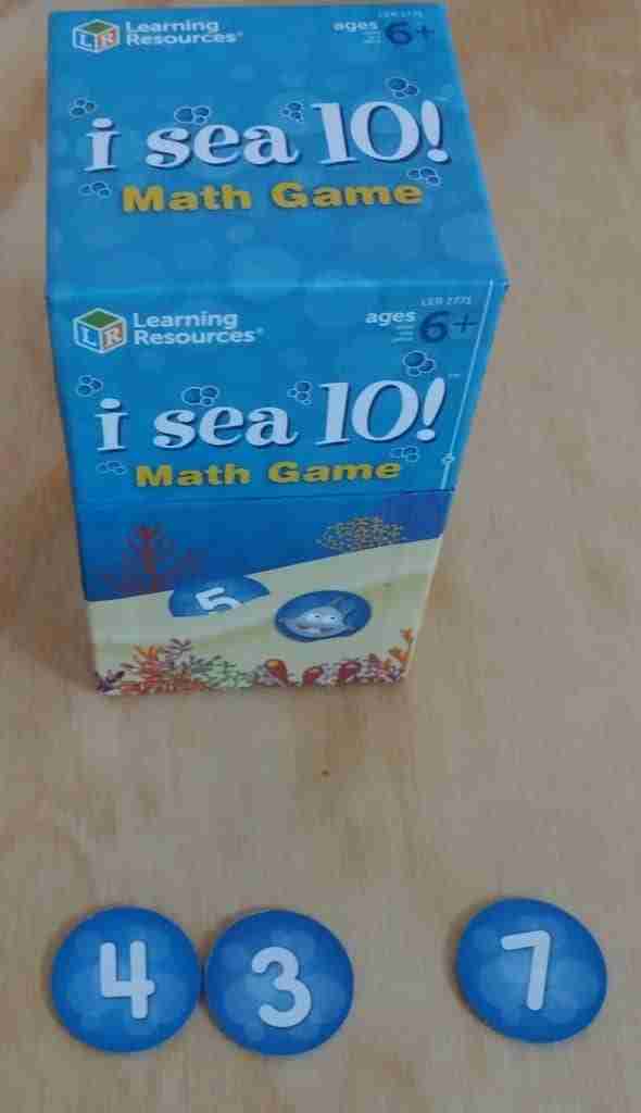 I Sea 10! is a fantastic game for helping young children work on counting, addition and subtraction, and especially making 10. You know, learning that 6+4=10, or 3+7=10. Really knowing how to make 10 makes it much easier to add double-digit (and larger) numbers later in life.